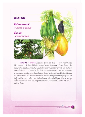 ลักษณะ : มะละกอเปนไมลมลุก อายุหลายป สูง 3 – 6 เมตร เปลือกตนเรียบ