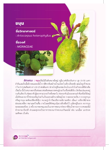 ลักษณะ : ขนุนเปนไมยืนตนขนาดใหญ อยูในวงศเดียวกับสาเก สูง 15-30 เมตร