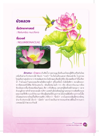 ลักษณะ : บัวหลวง ในพ้นที่ขนาดเล็กหรือปลูกเปนกลมในพ้นท่กวาง น้ำหวานจากเกสรดอกคอรเดียเปนอาหารของ มีเหงาและไหลอยูใตดิน