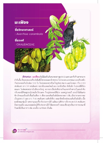 มีหลายเมล็ด ผลและยอดออนใชรับประทานได ใหผลตลอดป ผลมะเฟองสุกเปนอาหารของนกที่